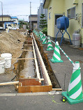 塀の基礎部分の型枠を造っています。(2007/07/05 撮影)